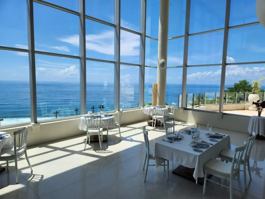 Restoran fine dining dengan pemandangan tebing dan laut lepas ini menawarkan suasana romantis yang elegan. Candle light dinner di Ju-Ma-Na sangat populer untuk perayaan anniversary dan proposal karena view sunset-nya yang dramatis.